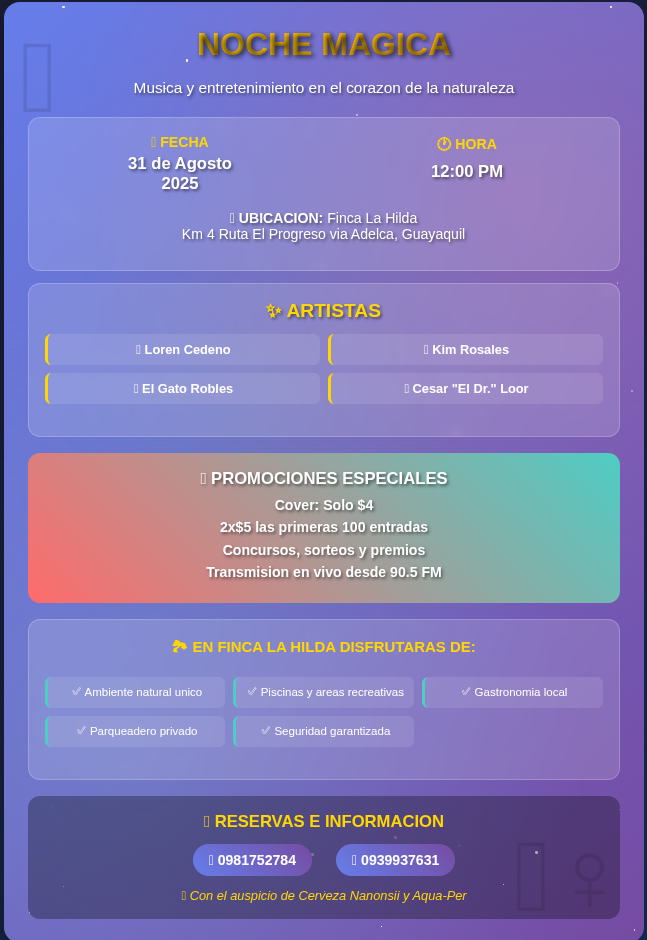 Show artísticos todos los fines de semana con música en vivo y animación.